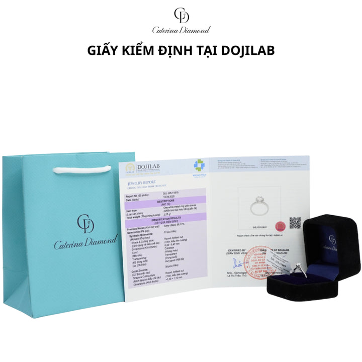 - 1 sản phẩm khách nhận được khi mua hàng có đủ : THẺ NHỰA và GIẤY KIỂM ĐỊNH GRA kim cương nhân tạo
