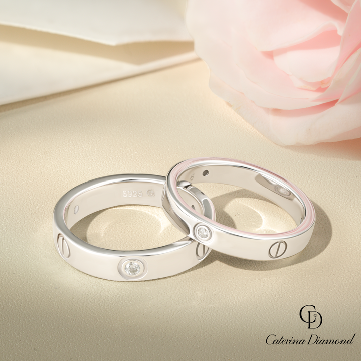 [Nhẫn cưới] Nhẫn đôi nam nữ kim cương Moissanite Caterina Diamond Love Bond DR061-DR062 – Kiểm định GRA