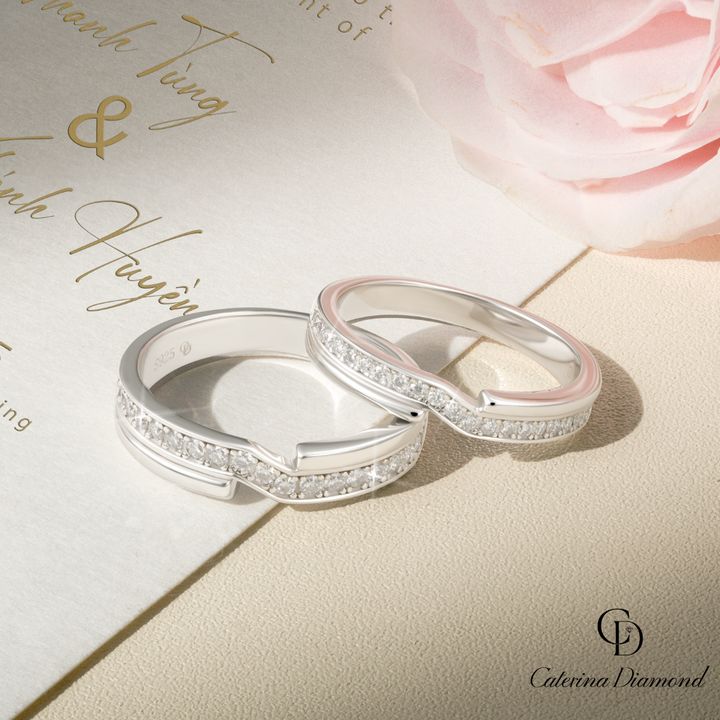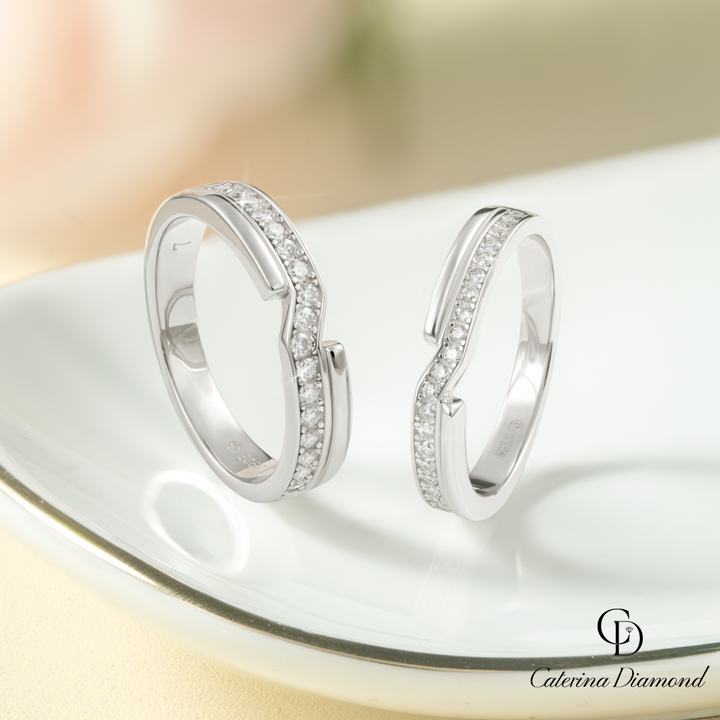 [Nhẫn cưới] Nhẫn đôi nam nữ kim cương Moissanite Caterina Diamond Eternal Vows DR056 - Kiểm định GRA
