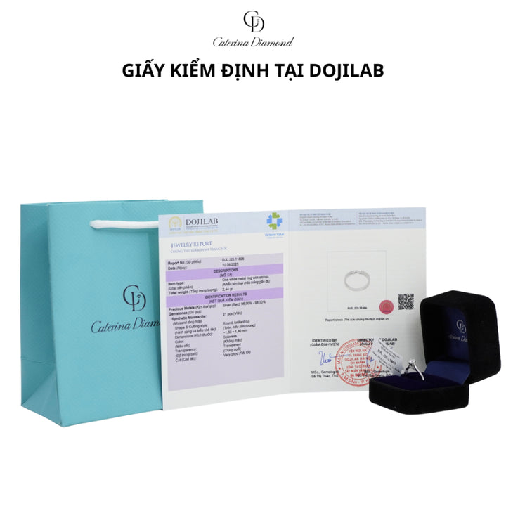 - Chất liệu: Bạc ý, Kim cương nhân tạo Moissanite