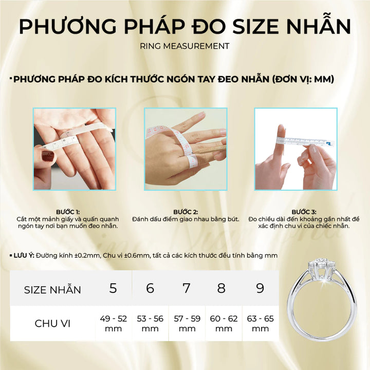 - Chất liệu: Bạc Ý, Kim cương nhân tạo Moissanite