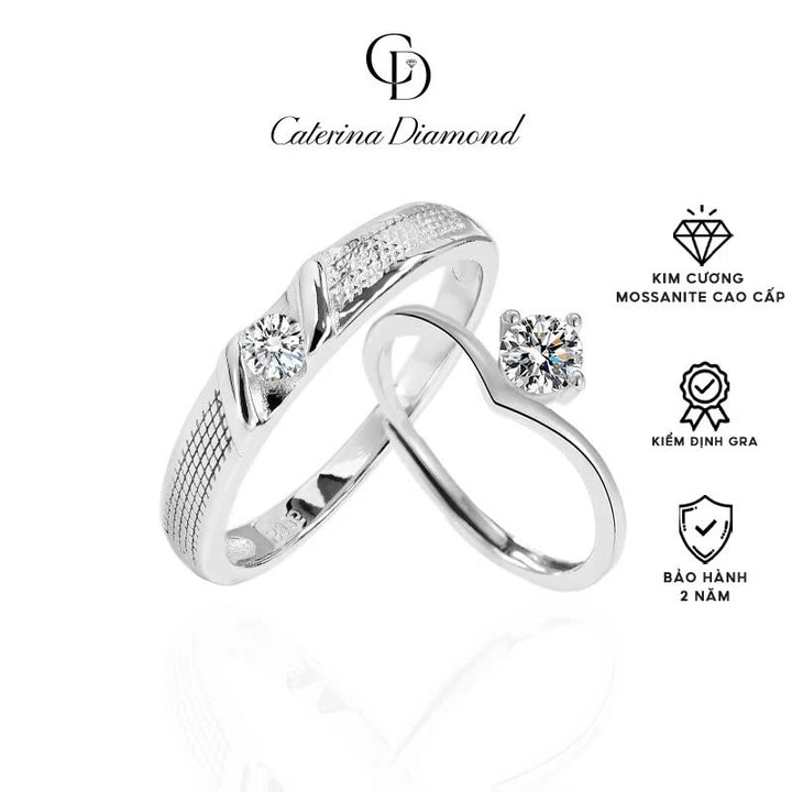 Nhẫn đôi nam nữ kim Cương Moissanite Caterina Diamond Ring Couple DR043-DR031