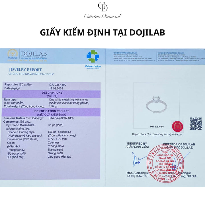 - Chất liệu: Bạc Ý, Kim cương nhân tạo Moissanite