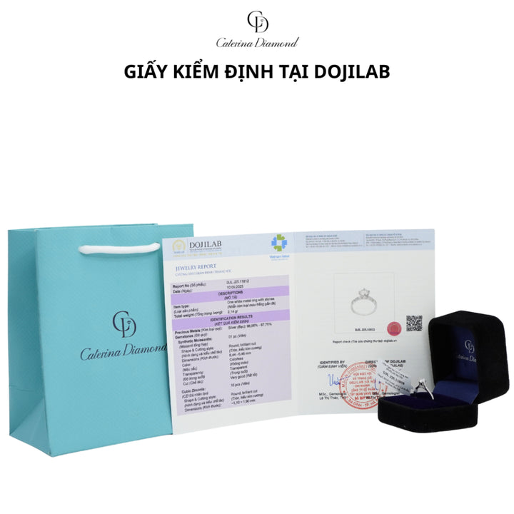 - 1 sản phẩm khách nhận được khi mua hàng có đầy đủ : THẺ NHỰA và GIẤY KIỂM ĐỊNH GRA kim cương nhân tạo