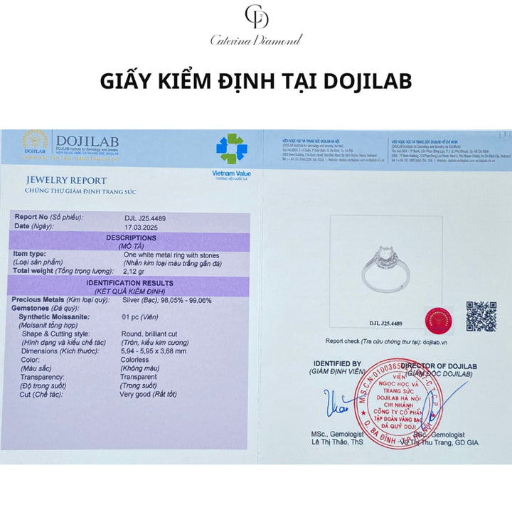 - 1 sản phẩm khách nhận được khi mua hàng có đầy đủ : THẺ NHỰA và GIẤY KIỂM ĐỊNH GRA kim cương nhân tạo