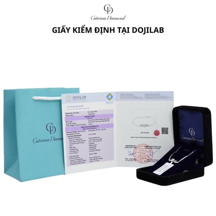 - Chất liệu: Bạc Ý, Kim cương nhân tạo Moissanite